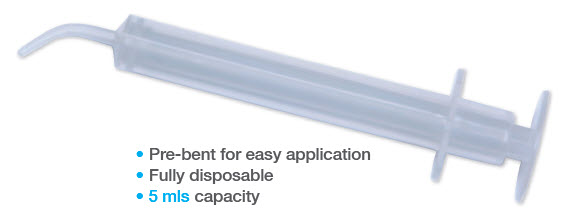 Aftrykssprøjte i plast med buet spids.