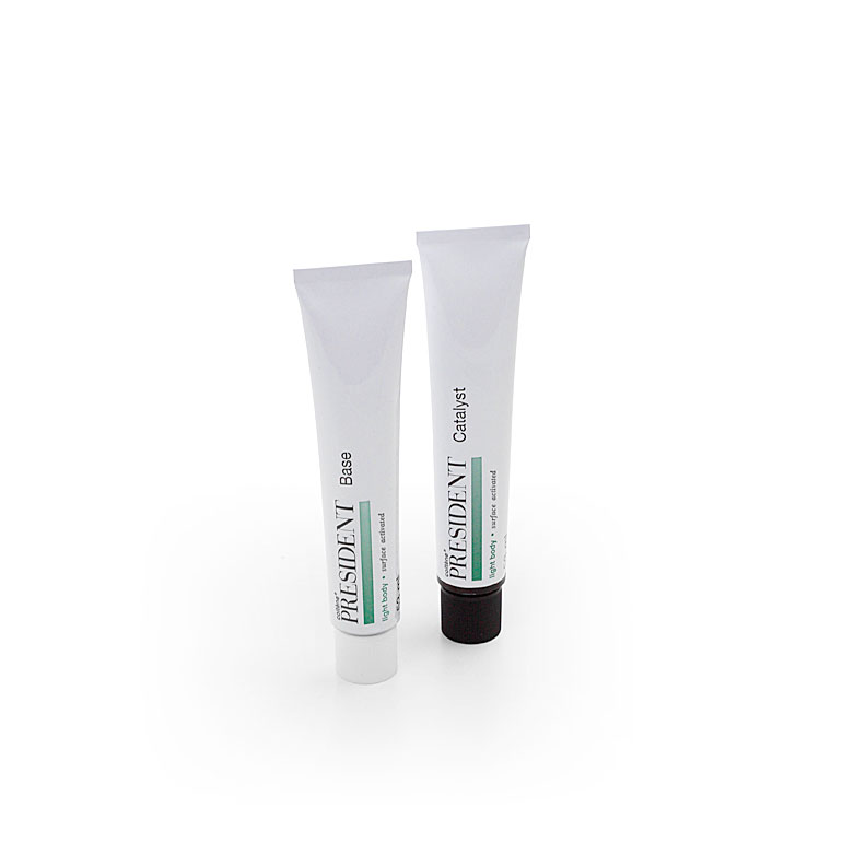 A-silikone i tuber, light body, grøn, base og katalysator.