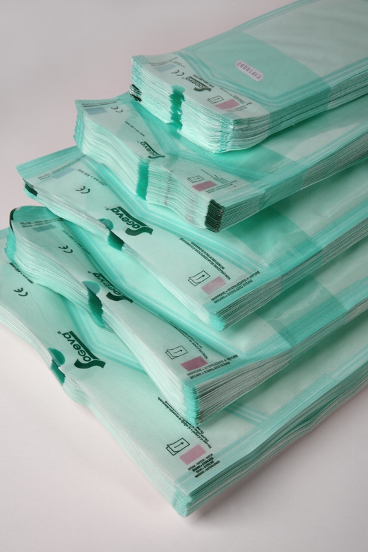 Bakterietæt autoklavepose med indikator på papirsiden og plast på den anden side.