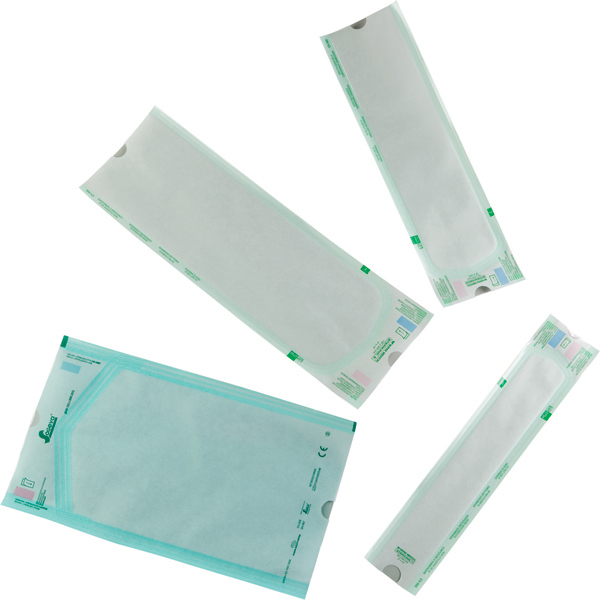 Autoklavepose i papir/plast uden klæb. Med indikator på papirsiden. Indermål ca. 3,3 x 20 cm