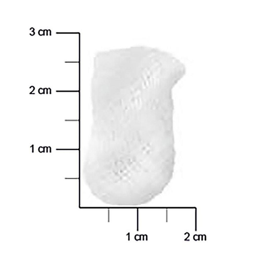 100% bomuld og fnugfri. Sterilt emballeret. OBS: Hedder hasselnød, men svarer til en stor ært.