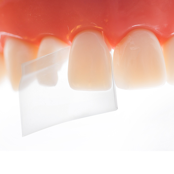 Kontureret matricestrip med "krave" til lukning af diastema, klasse IV eller store klasse III fyldninger., Placer strippen approksimalt og træk indtil strippens højde matcher tanden. Genskaber tandens anatomi.