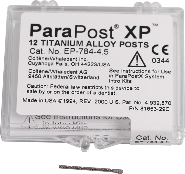 Cylinderiske rodstifter i titanium til opbygning af rodfyldte tænder. 1,14 mm