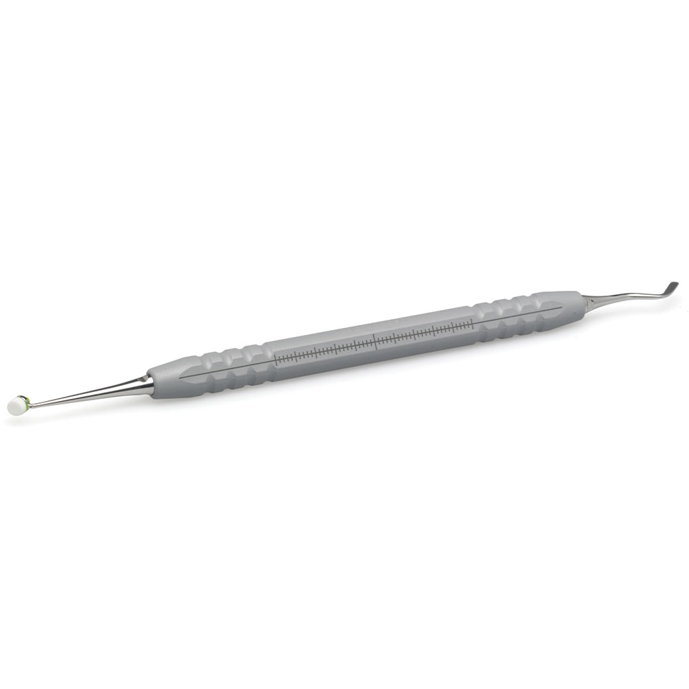 Dobbeltendet kompositinstrument med spatel i den ene ende og Optrasculpt pads/skumpude i den anden ende. Kan autoklaveres. Skumpude fåes i 4 og 6mm.