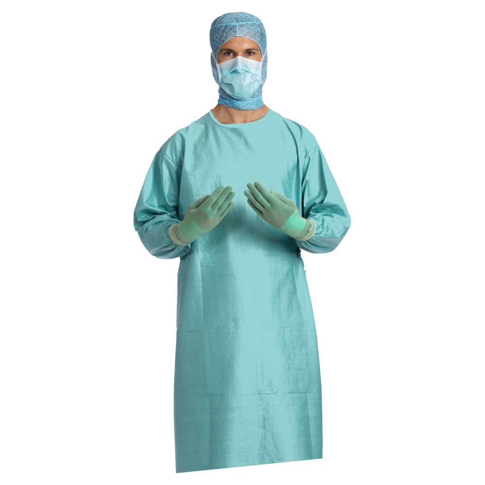 OP-kittel med bløde, elastiske manchetter og velcrobånd i halsen samt lukket ryg. Lavet i blødt væskeafvisende og åndbart nonwoven materiale. SP/Standart Performancemed. Længde: 145cm og omkreds 174cm. Sterilt pakket.