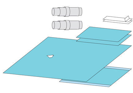 Indeholder: 2stk afdækningsstykker 45 x 75cm, 1stk hulstykke 150 x 150cm, 1stk bordafdækning 75 x 100cm, 2stk slangeovertræk 8 x 120cm, 2stk OP tape 9 x 49cm til klæbning af afdækningsstykker.