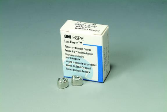 Provisorisk og ergonomisk formet krone af tin-sølvlegering. Lette at forme. Passer til præmolar, højre overkæbe. Diameter: 8,5mm